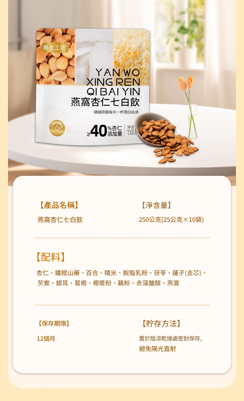 蘇晏霈愛用推薦!喝這個一月個瘦了12斤還能能養陰潤肺,兼清肺熱,讓肌膚煥發光彩~製作過程,保持自然風味,無香精、植脂末、防腐劑等各種添加劑,吃到的都是自然食材本身的味道。因此一打開包裝,杏仁的香氣襲來,美好撲面而來!粉質細膩,而且經過了熟化處理,方便沖泡,用溫水沖泡也不易結塊。