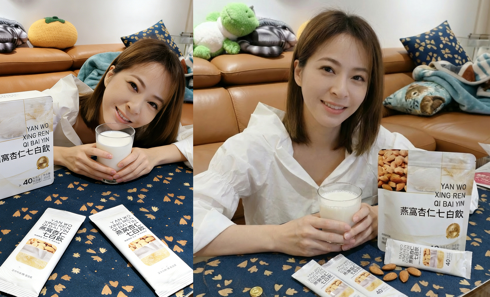 藍心湄和藍媽媽都很喜歡喝我們家的燕窩杏仁七白飲,潤肺補胃,推進身體代謝,健脾升清,尤其適合皮膚粗糙、乾燥、色素沉著!加入的燕窩:能有效促進膚膠原蛋白的形成,幫助肌膚對抗闇沉蠟黃,煥活肌膚!